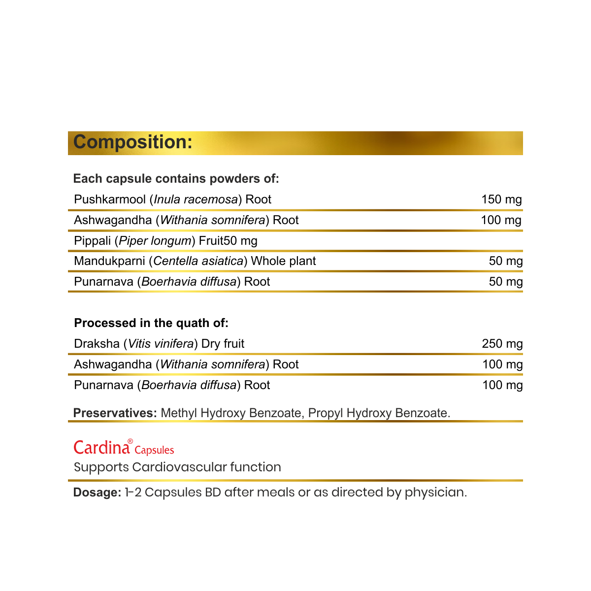 - CARDINA CAPSULES helps to support Cardiovascular functions.